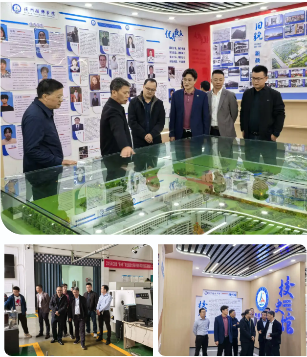 考察团一行在学院主要负责同志付志军的带领下进行了实地参观。从现代化的实训车间到功能齐全的教学场馆,从特色专业的教学展示到学生技能成果陈列,考察团成员边走边看、边听边问,深入了解学院的办学理念、专业布局、实训条件及人才培养特色。