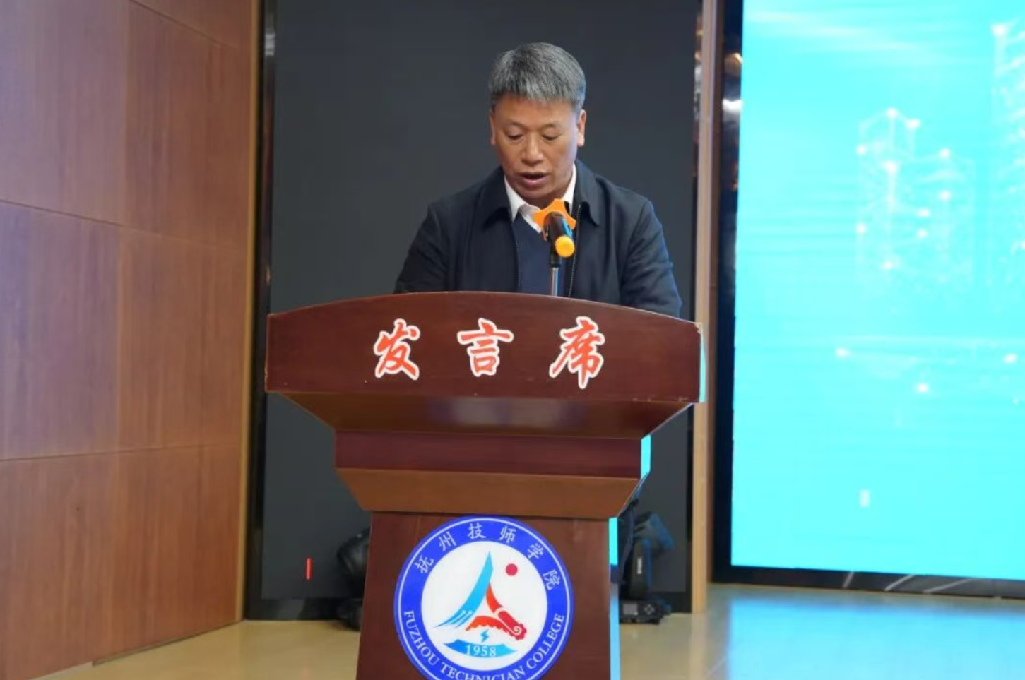 校领导付志军致辞,他表示,职业教育乃国之大计、党之大计,如今正迎来前所未有的发展机遇。习近平总书记强调“职业教育前途广阔、大有可为”,为我们指明了前进方向。抚州,作为江西新能源汽车产业的重要增长极,近年来以新能源汽车及零部件产业为主导,为区域经济发展注入了强劲动力。本次新能源汽车制造与装配赛项的举办,既是响应国家职业教育改革战略的具体行动,更是精准对接抚州乃至全省新能源汽车产业需求的务实举措。这不仅为全省中职院校搭建了交流教学经验、展示办学成果的平台,更为在座的各位青年学子提供了比拼专业技能、绽放青春梦想的舞台,让大家在竞技中锤炼本领,为未来投身产业发展做好充分准备。